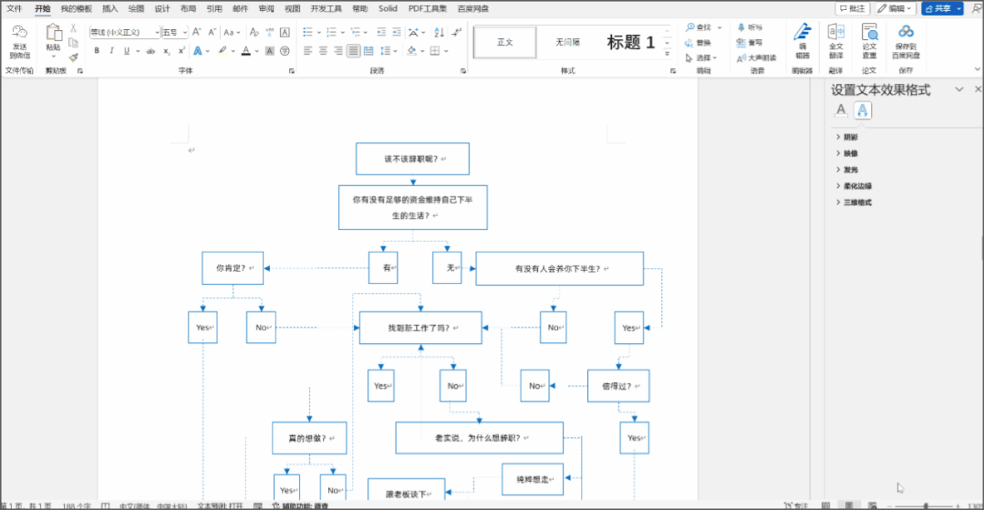 至此,一个基本的单向流程图就在文档中生成了,接下来您可以根据实际需要对内容进行详细编辑。