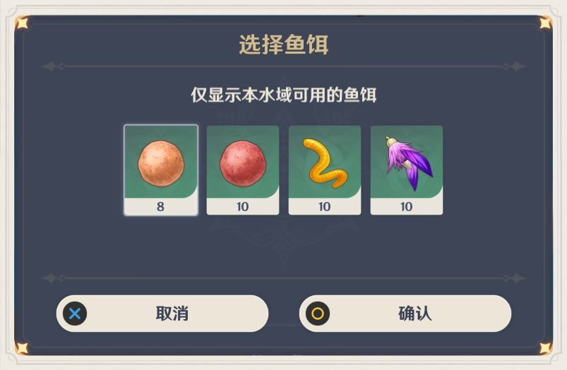 点击按钮后就会出现选择鱼饵的界面。