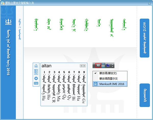 蒙科立蒙古文智能输入法是一款专门用于蒙古文文字输入的输入法,蒙古文输入法不仅可以让用户们快速输入蒙古文,而且还可以利用该输入法实现蒙古文的文字交流。