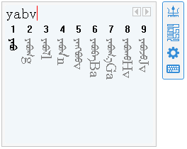 每个音节的首字母必输、其余字母可以省略。如输入蒙古文词??????????只需要输入(aqlh),候选框中便出现该词图。但其出现位置比较靠后,在输入码a后补充i,即可将该词提升到第一个位置图。以此类似,可通过补充每个音节首字母后的其余字母,直至您需要的词出现为止或出现在候选框靠前位置。